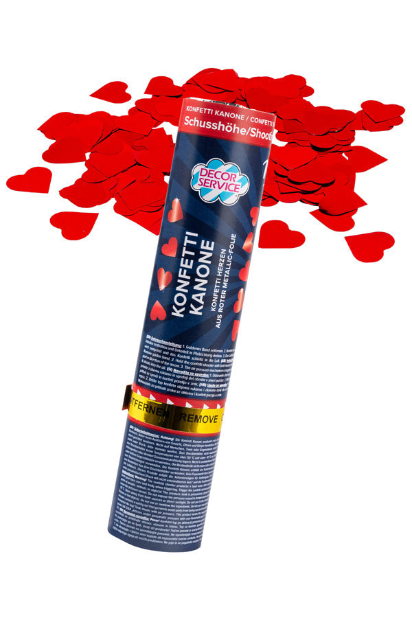 Konfetti Kanone „Herzen“, rot-metallic, 20cm
