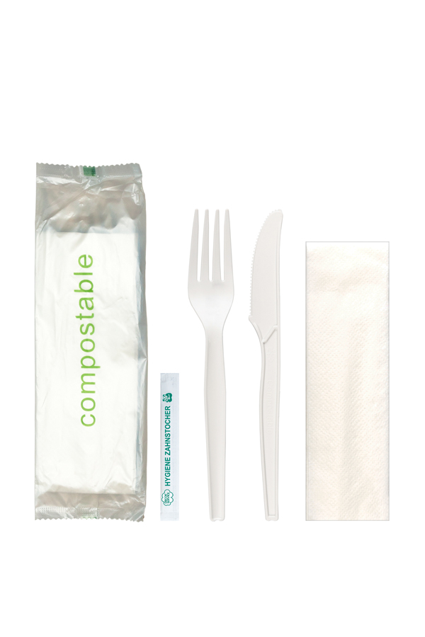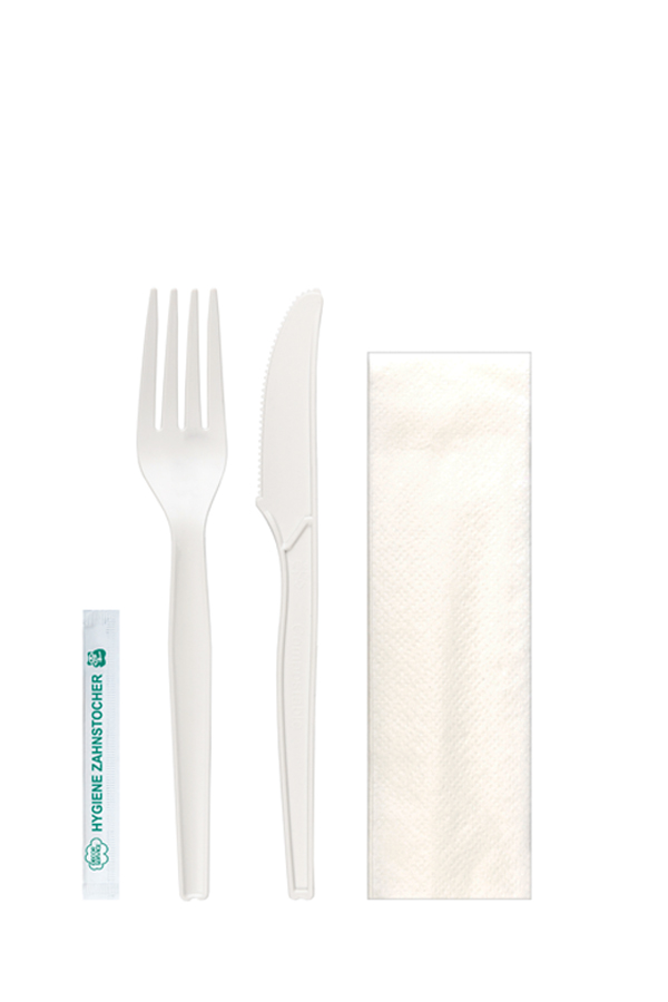 BIO cutlery sets, CPLA, reusable, white, ca. 17cm, 50 sets more