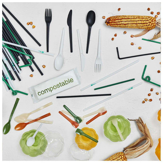 PLA ist eine echte umweltfreundliche Alternative zu herkömmlichen Einwegartikeln aus Plastik. Alle PLA-Artikel werden auf Basis nachwachsender Rohstoffe erzeugt, sind erdölfrei und zu 100% biologisch abbaubar und kompostierbar.