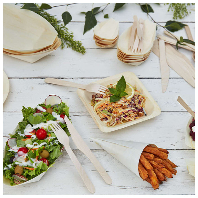 Die Naturally-Kollektion umfasst eine vielfältige Auswahl an umweltfreundlichen Einwegartikeln – darunter Fingerfood-Schalen, Tüten, Holzteller und Bestecke aus FSC®-zertifiziertem Holz, langlebige Bambusprodukte, Bio-Kartonbecher und Papiertrinkhalme. Ergänzt wird das Sortiment durch Bestecke aus dem biologisch abbaubaren Biokunststoff PLA, gewonnen aus dem nachwachsenden Rohstoff Mais.